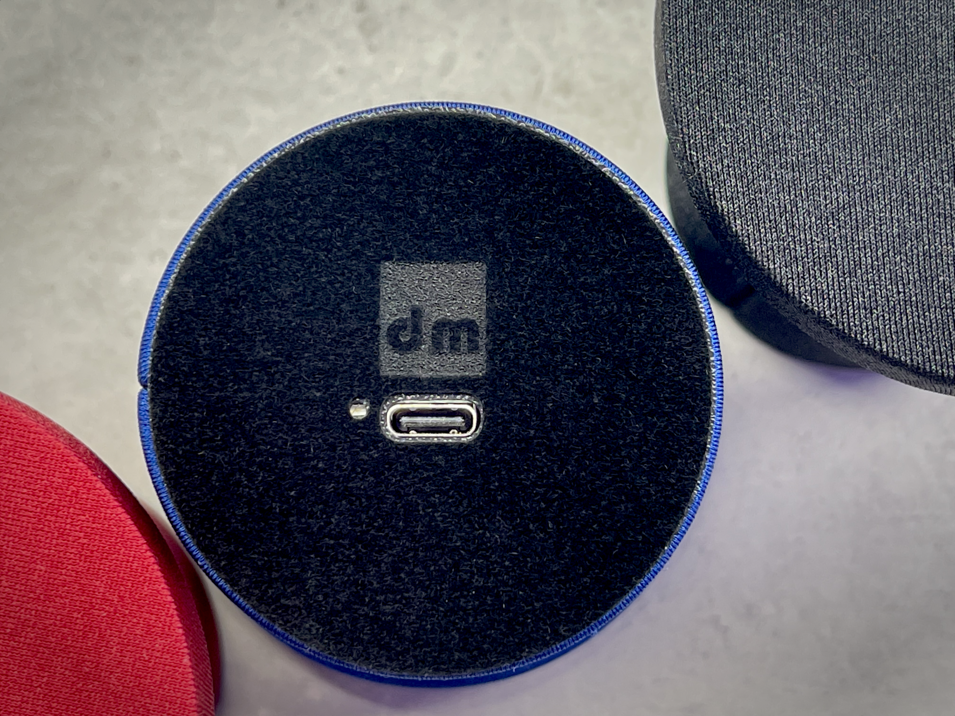 Tiny-Lamp, a portable lighting solution elegantly wrapped in fabric. It features a hidden button for activation, providing a seamless and satisfying user experience. Its soft lighting effect combined with a pleasant tactile finish makes it a distinctive addition to any table.
